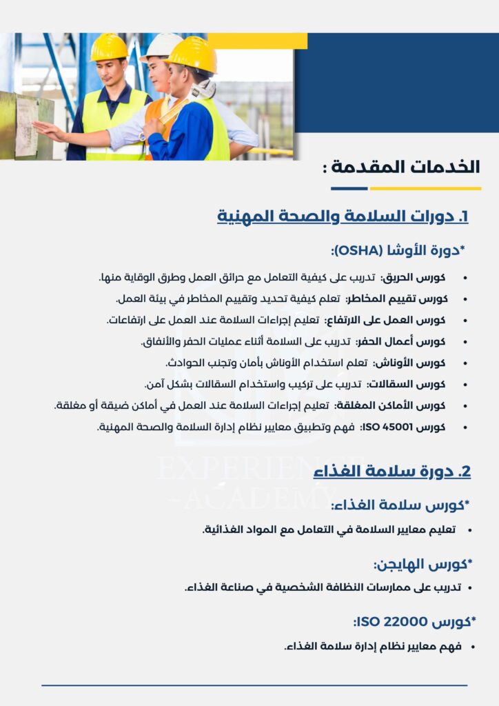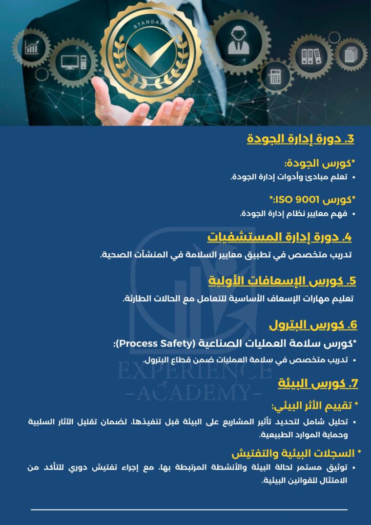 - التقليل من المخاطر: تساعد الدورة في تقليل الحوادث التي قد تحدث نتيجة لعدم الامتثال لإجراءات السلامة.