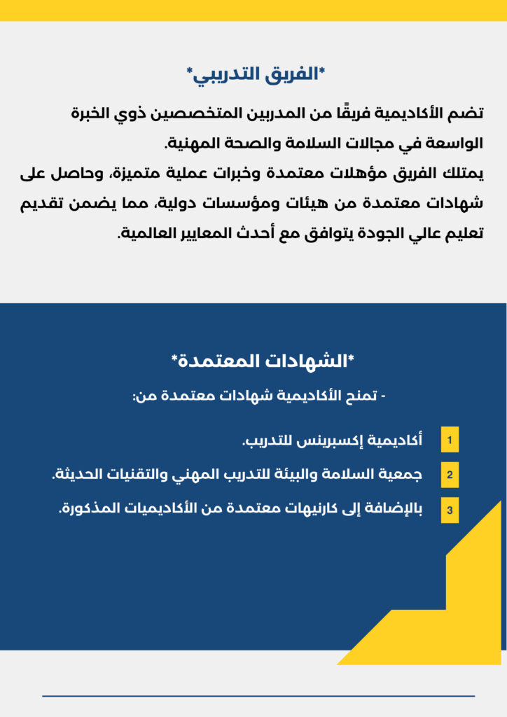 1. التدريب على السلامة